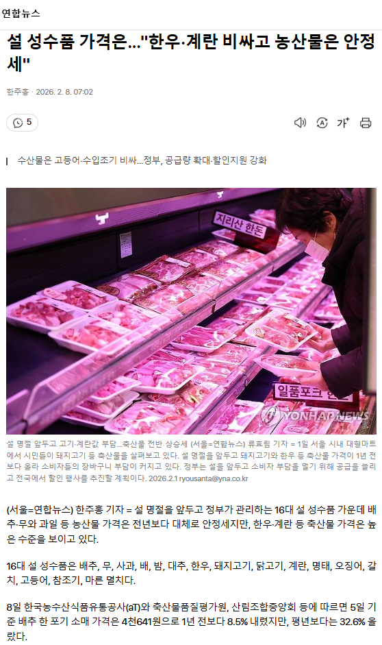설 성수품 가격은… "한우·계란 비싸고 농산물은 안정세"