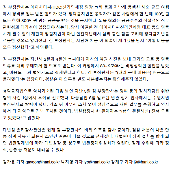 ‘명태균·김영선 무죄’ 판사, 기업서 국외 골프여행비 받아 약식기소 ㅡ 김인택 창원지법 부장판사