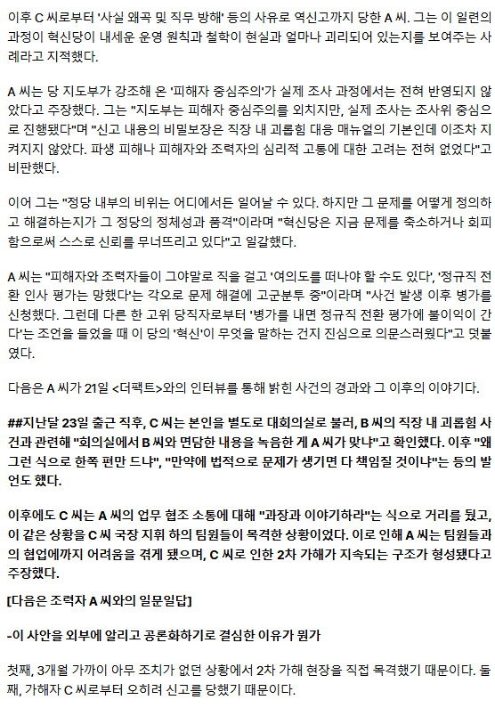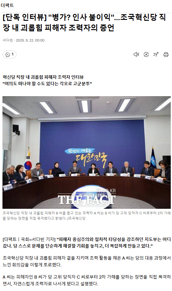 [단독 인터뷰] "병가? 인사 불이익"… 조국혁신당 직장 내 괴롭힘 피해자 조력자의 증언