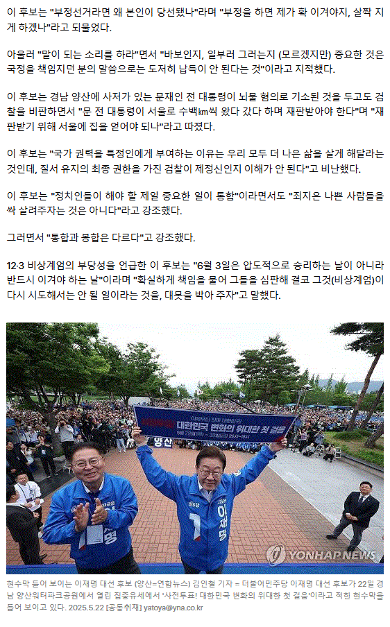 이재명, 尹겨냥 "처벌해도 시원찮을 판… 통합과 봉합은 달라"(종합)ㅡ 통합과 봉합을 구분 못하는 尹
