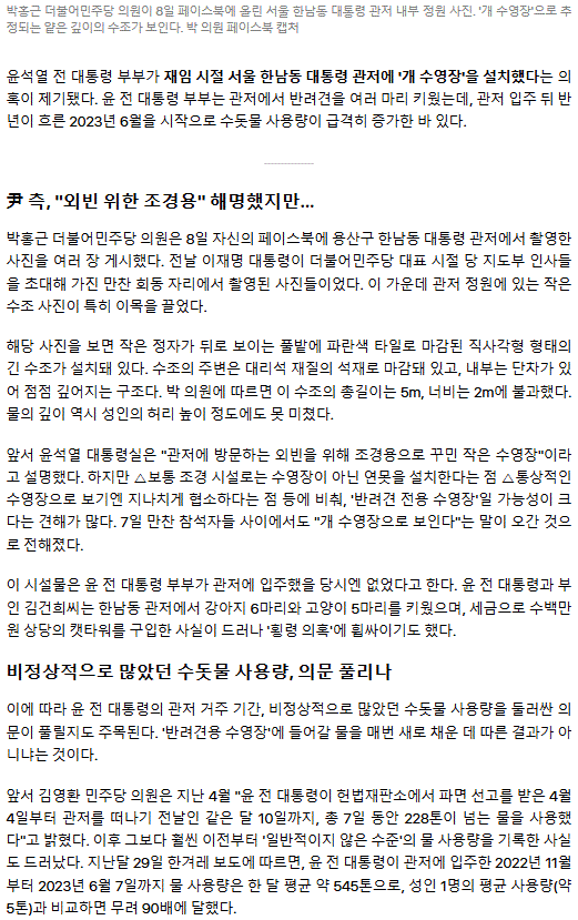 "개 수영장?"… 일주일에 물 228톤 쓴 尹 관저서 발견된 '의문의 수조'