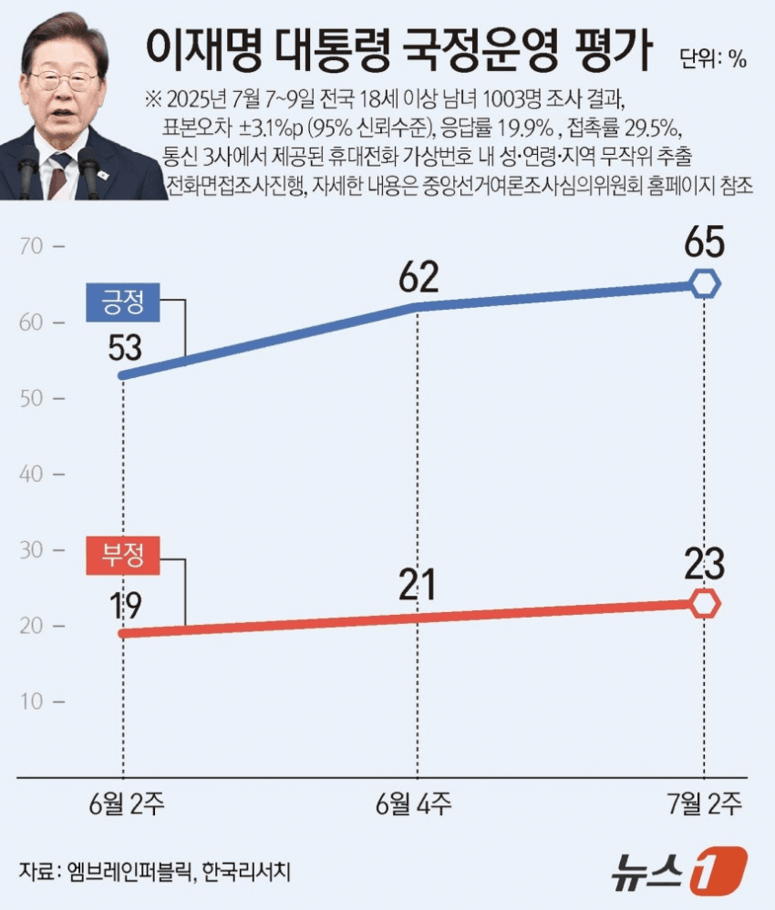 중도) 긍정 68% VS 부정 20%