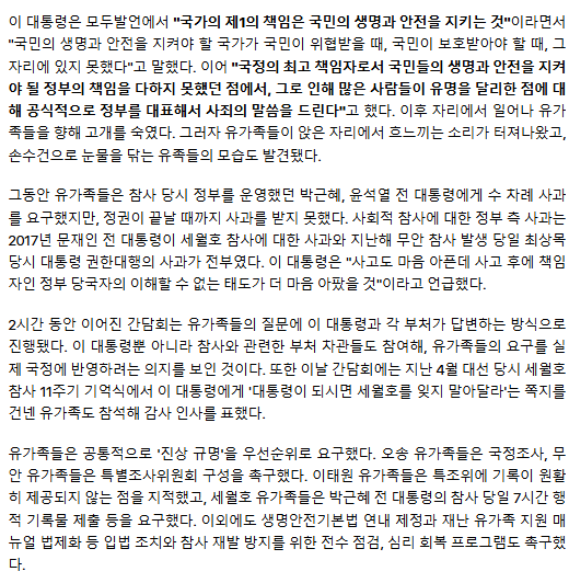 참사 유가족들에게 고개 숙인 이 대통령 "정부 대표해 사죄드린다"