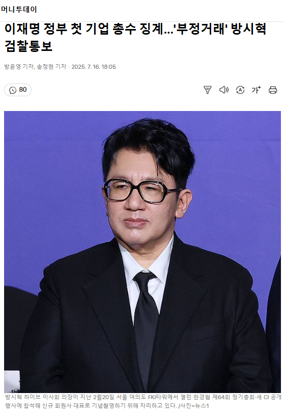 이재명 정부 첫 기업 총수 징계… '부정거래' 방시혁 검찰통보