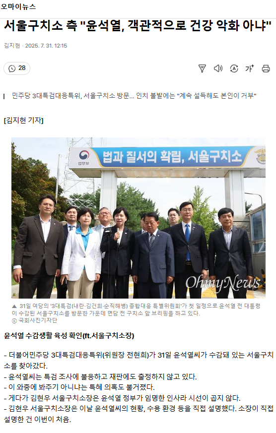 서울구치소 측 "윤석열, 객관적으로 건강 악화 아냐" ㅡ 구속적부심에서 4시간 30분 해명