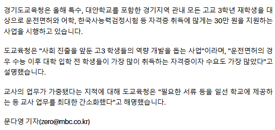 '고3 운전면허 취득 지원' 경기교육청 사업에 교사들 반발