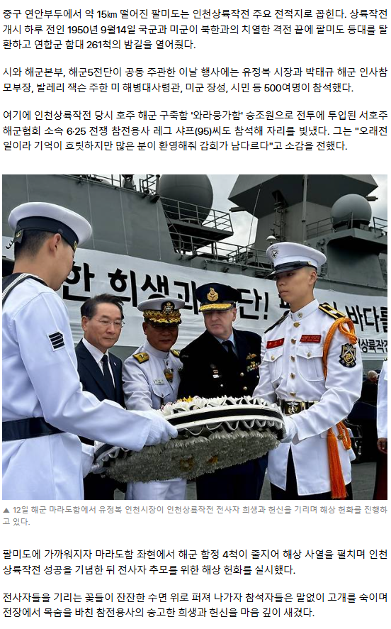 [현장] 인천상륙작전 참전용사 추모… '승리 등불’ 팔미도 앞바다에 띄운 ‘평화 약속’