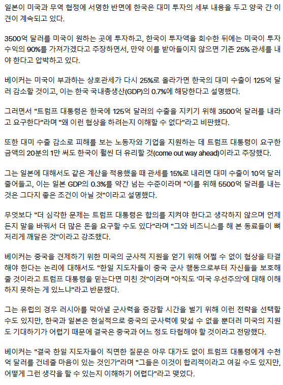 美학자 "한국, 트럼프에 488조원 줄 바엔 수출 지원이 더 낫다"