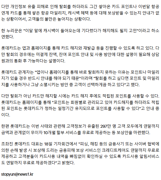 "롯데카드 탈퇴할게요" 우르르… 쌓아둔 '마일리지·포인트' 어떡해