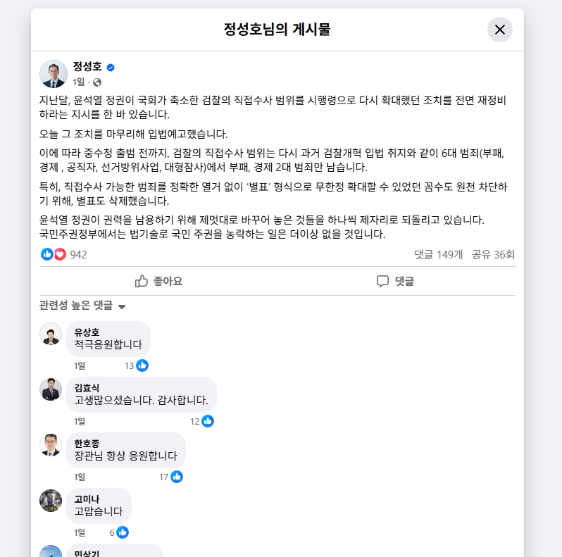 보여주세요 정성호 장관 일만 잘하고 있네요