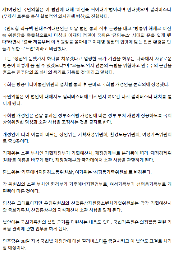 방송미디어통신위 신설법 與주도 국회 통과… 방통위 17년만 폐지 (종합)
