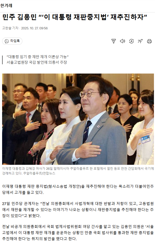 대통령의 소추권으로 당연한 것인데도 악마같은 국힘과 기득권 판사들의 농간이 있을 수 있어서 이런 법안까지 통과시켜야 한다는 현실이 참 참담하지만 파기환송까지 하는 인간들이니 재판중지법 통과시켜서 확실히 해두는 것도 좋을 것 같네요 아직도 비상식적인 일들이 일어나고 내란 잔당들이 아직도 많으니 마지막 한 놈까지 없앨 때까지 방심하면 안 되고 열심히 해야 될 것 같습니다