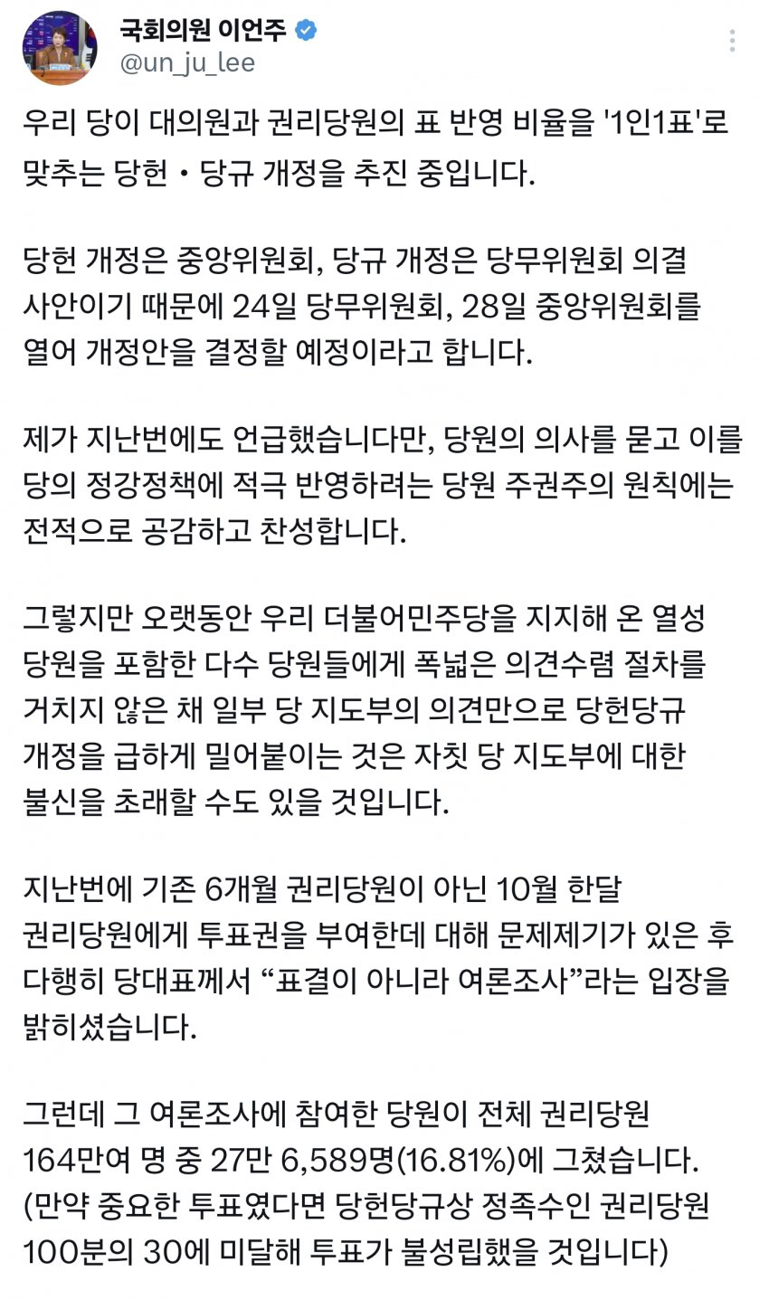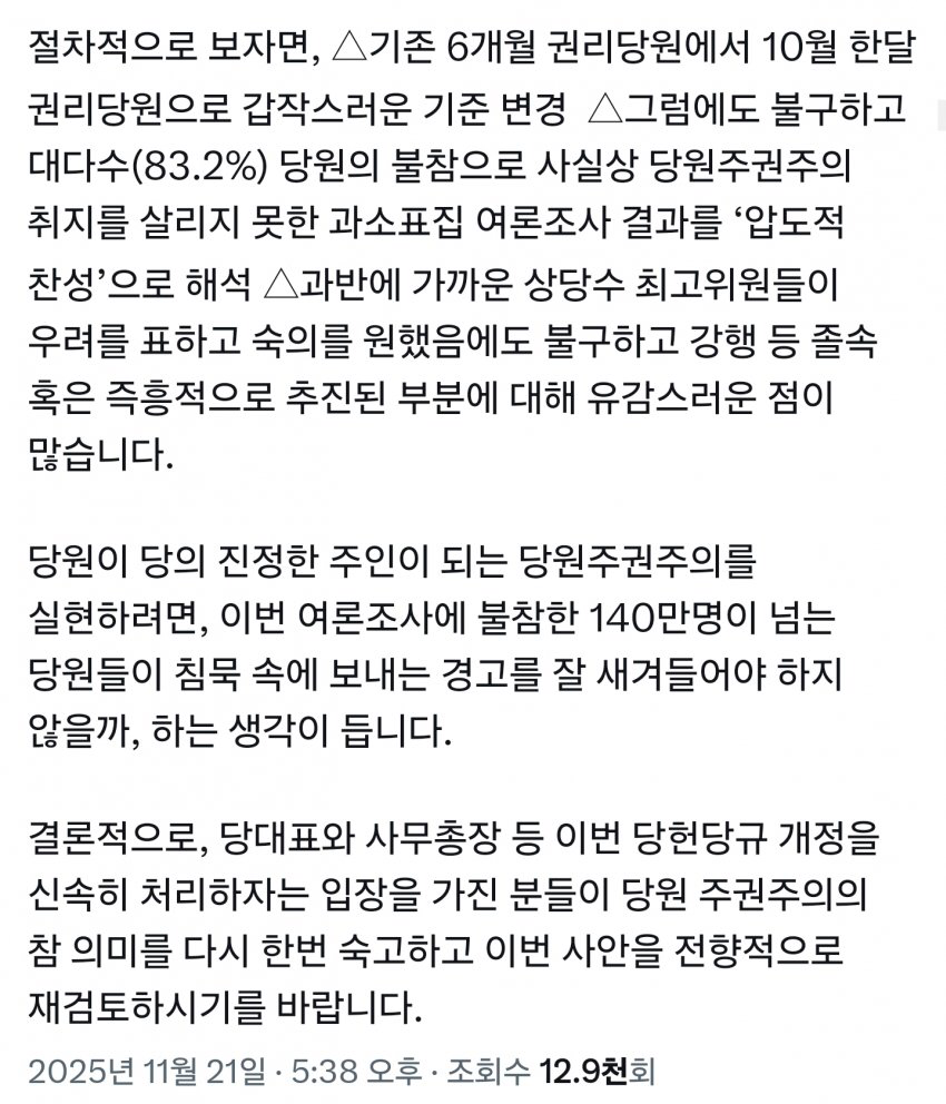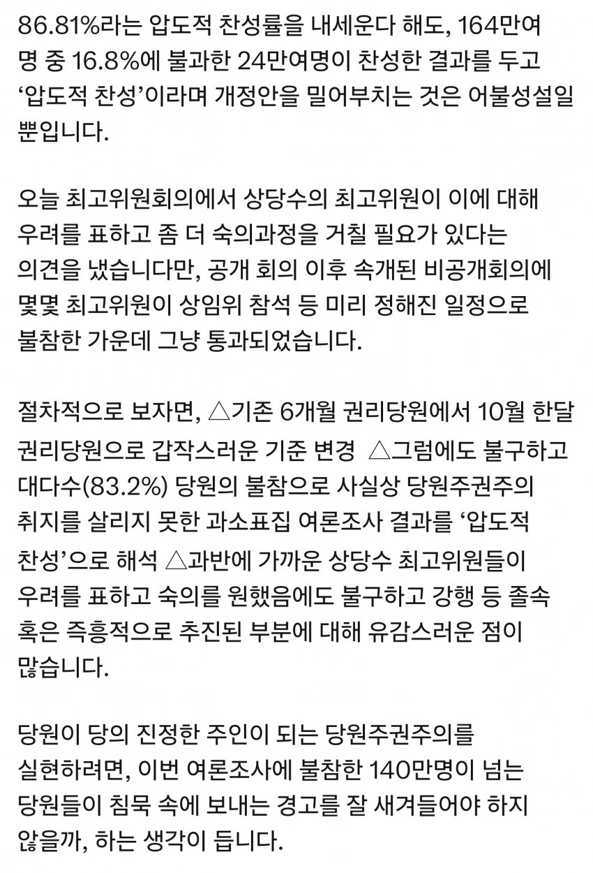 대다수 당원들이 참여를 못했고 어느 권리 당원들은