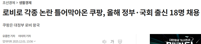 쿠팡은 특히 위원회가 출범한 달에 혁신당 조국 대표의 비서실장을 지낸 조용우 부사장을 영입해 이