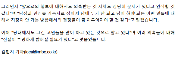 김병기 원내대표는 직을 내려 놓으셔야 합니다. 지금 내란 종결 - 개혁 처리 집중해야하는데 본인 일로 민주당이 지하 10층으로 내려 가고 있습니다. 계속 이러다간 지방선거에도 부정적 영향이 미칠 수 밖에 없습니다.