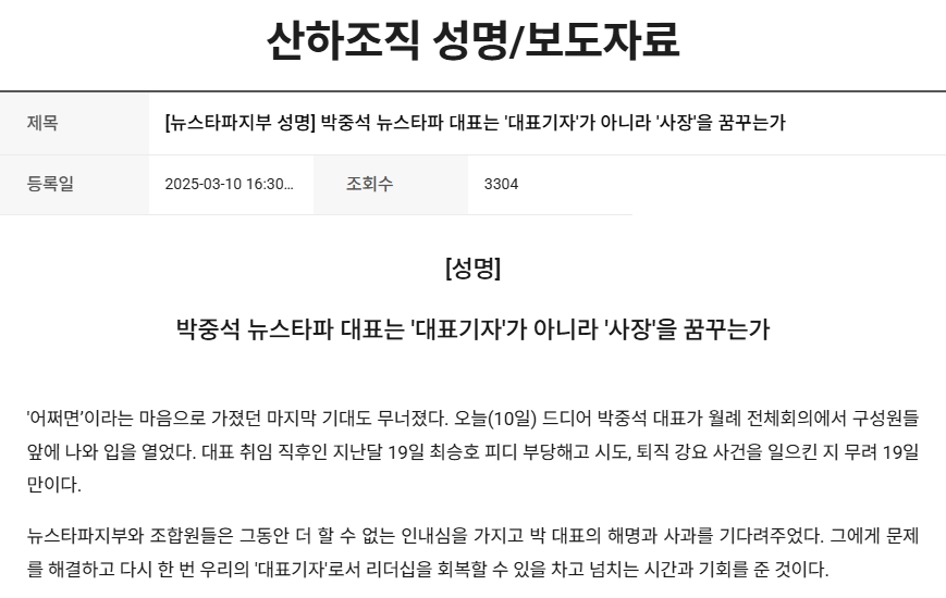 뉴스타파에 25년 2월 17일 대표로 취임한 박중석 사장의 예전 SNS 메세지를 보면