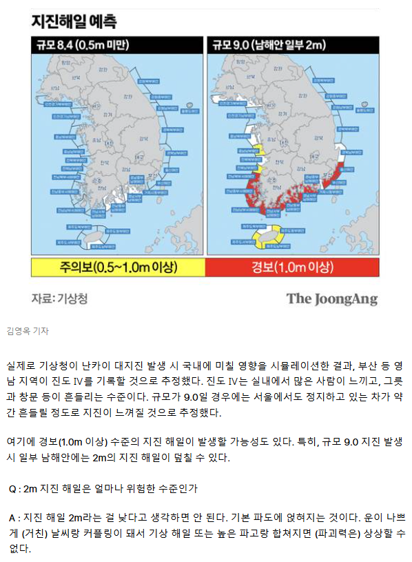 [단독] "남해 2m 해일 덮친다" 기상청장의 日난카이 대지진 경고