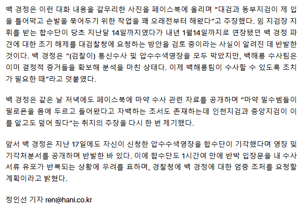 백해룡, 임은정과 텔레그램 대화 공개… “입 틀어막고 손발 묶으려 해”