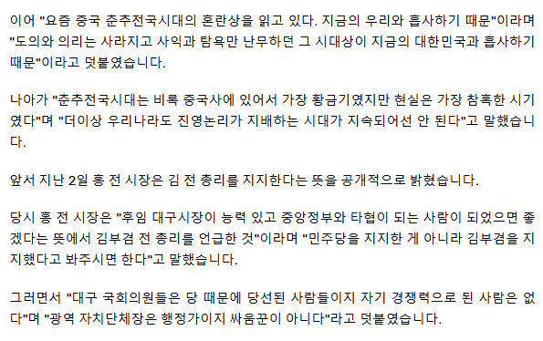 '김부겸 지지' 홍준표 "정당 얽매이지 않고 자유롭게 살겠다"