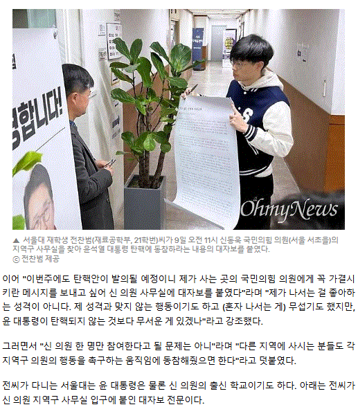 신동욱 사무실에 대자보 붙인 서울대생 "동참해달라"