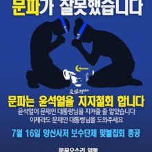 엄중하시고 옹졸하시어 지지자들도 민주당을 사랑해서 윤석열을 지지한다는 개솔을 날린 그분맞습니다