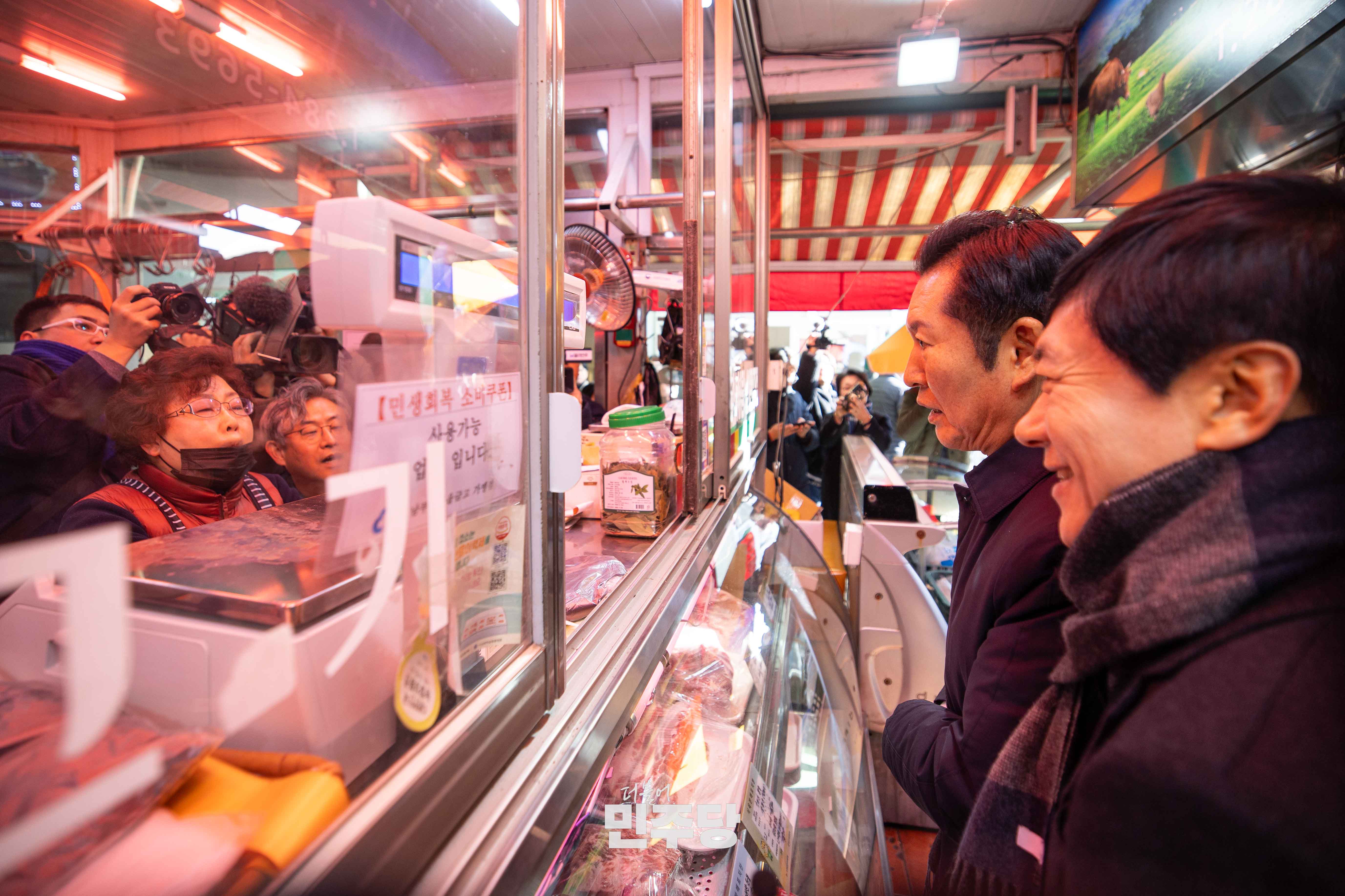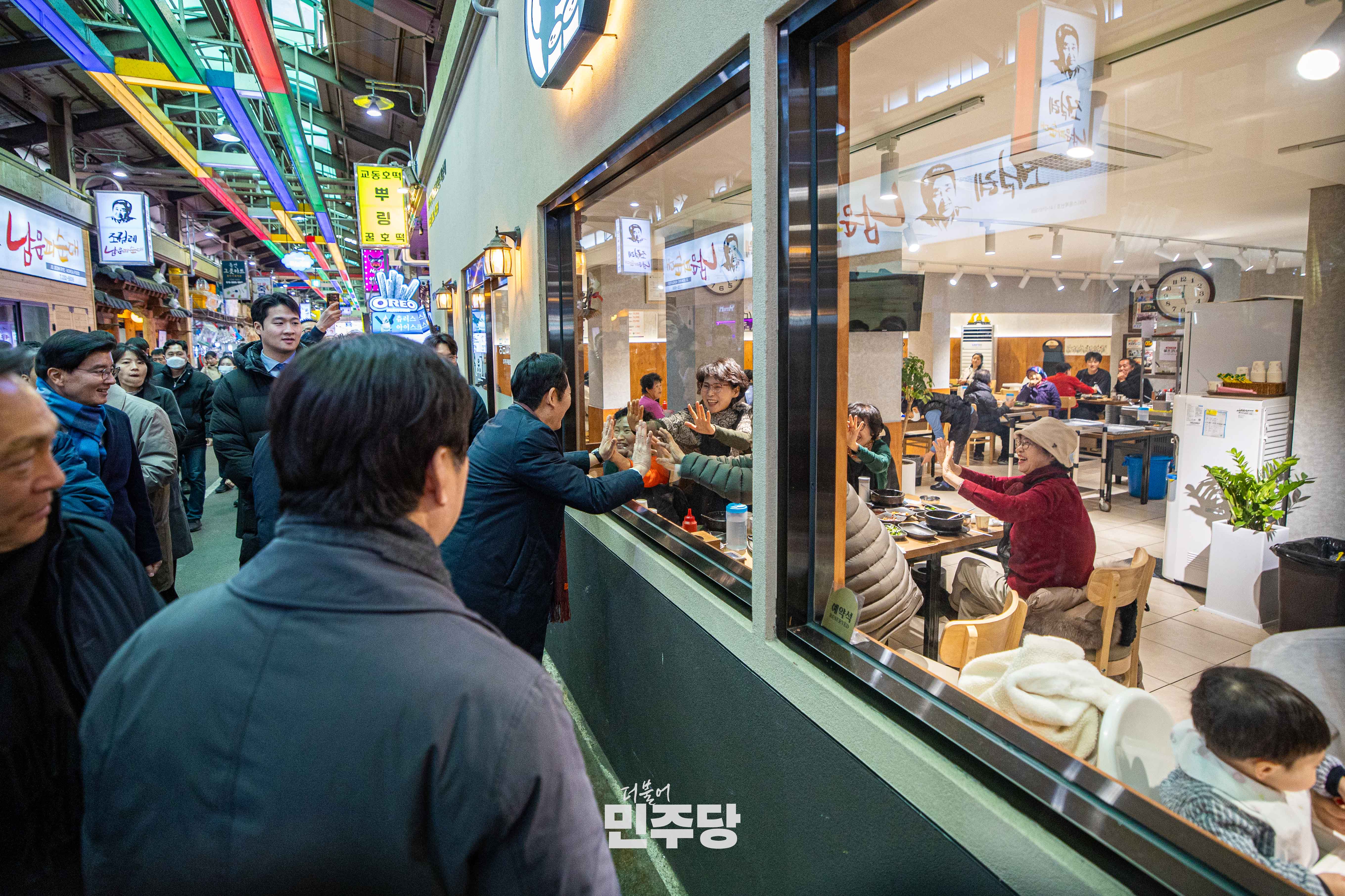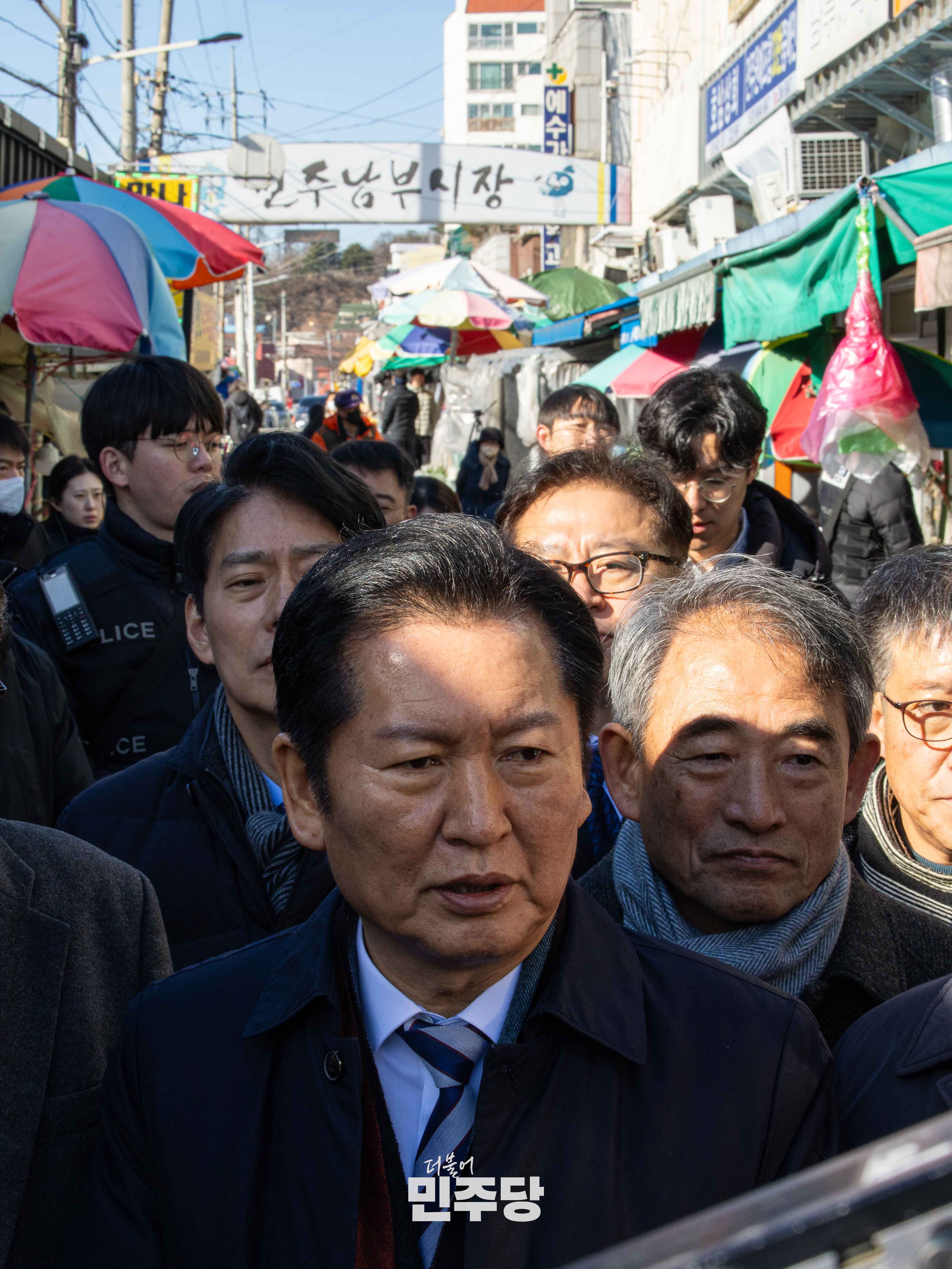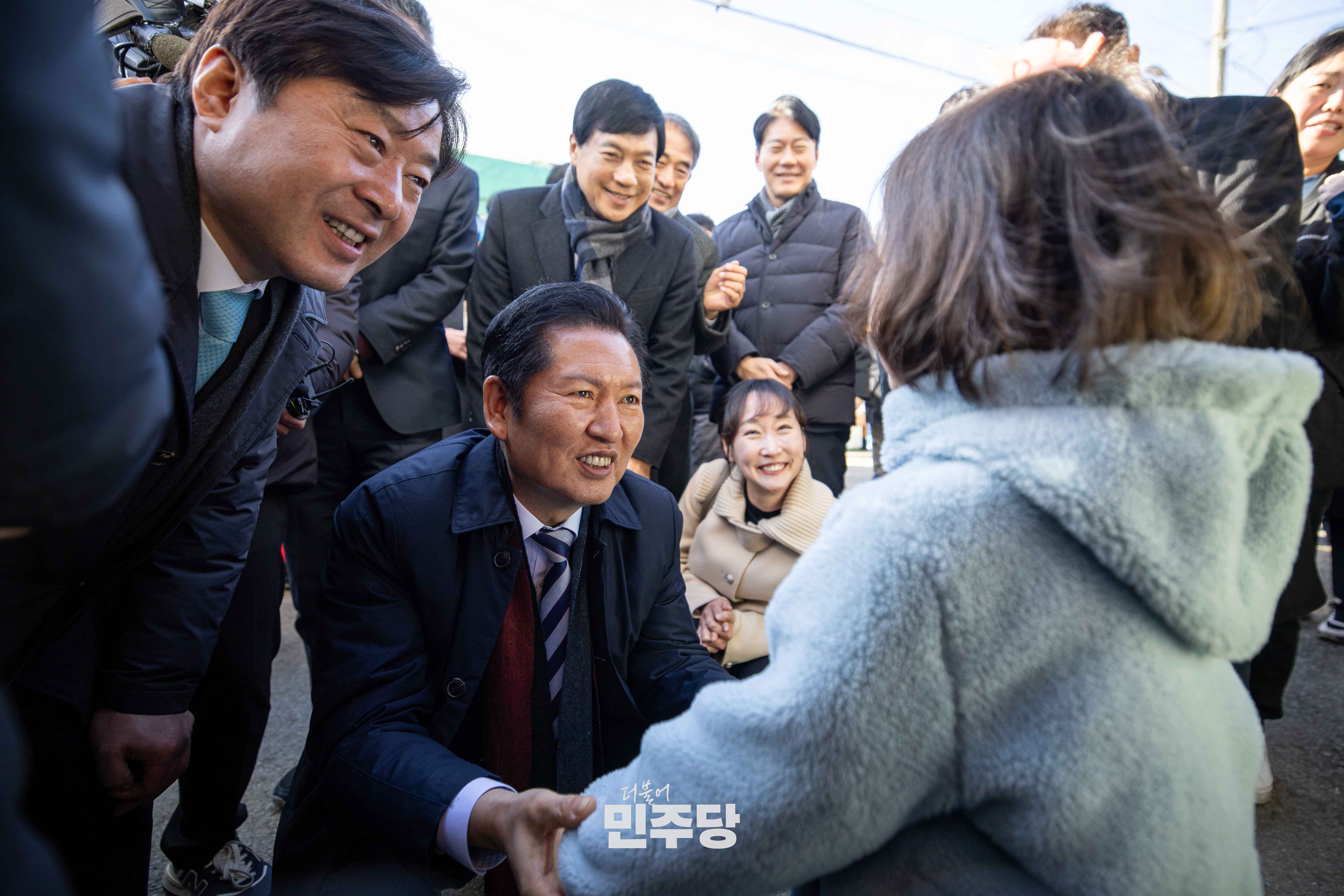 정청래 당대표가 2025.12.31.(수) 전북 전주시에 위치한 남부시장에 방문하여 시장을 방문한 이용객들과 인사를 나누고 있다.