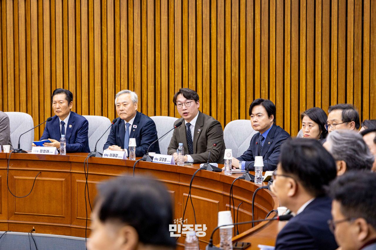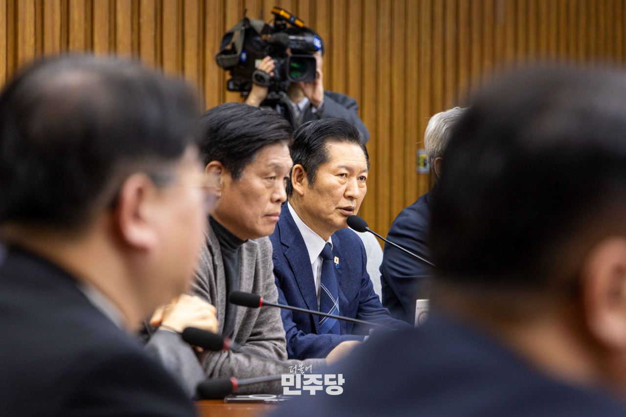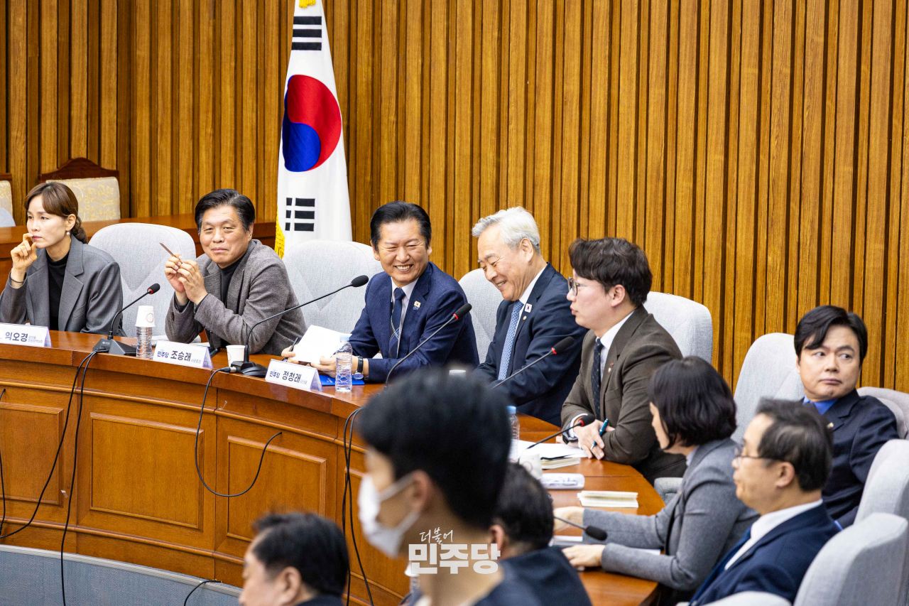 정청래 당대표가 2026.02.05.(목) 국회 본청 245호에서 진행된 초선의원 간담회에 참석하여 조국혁신당과의 합당에 대한 초선의원들의 의견을 경청하겠다 말하고 있다.
