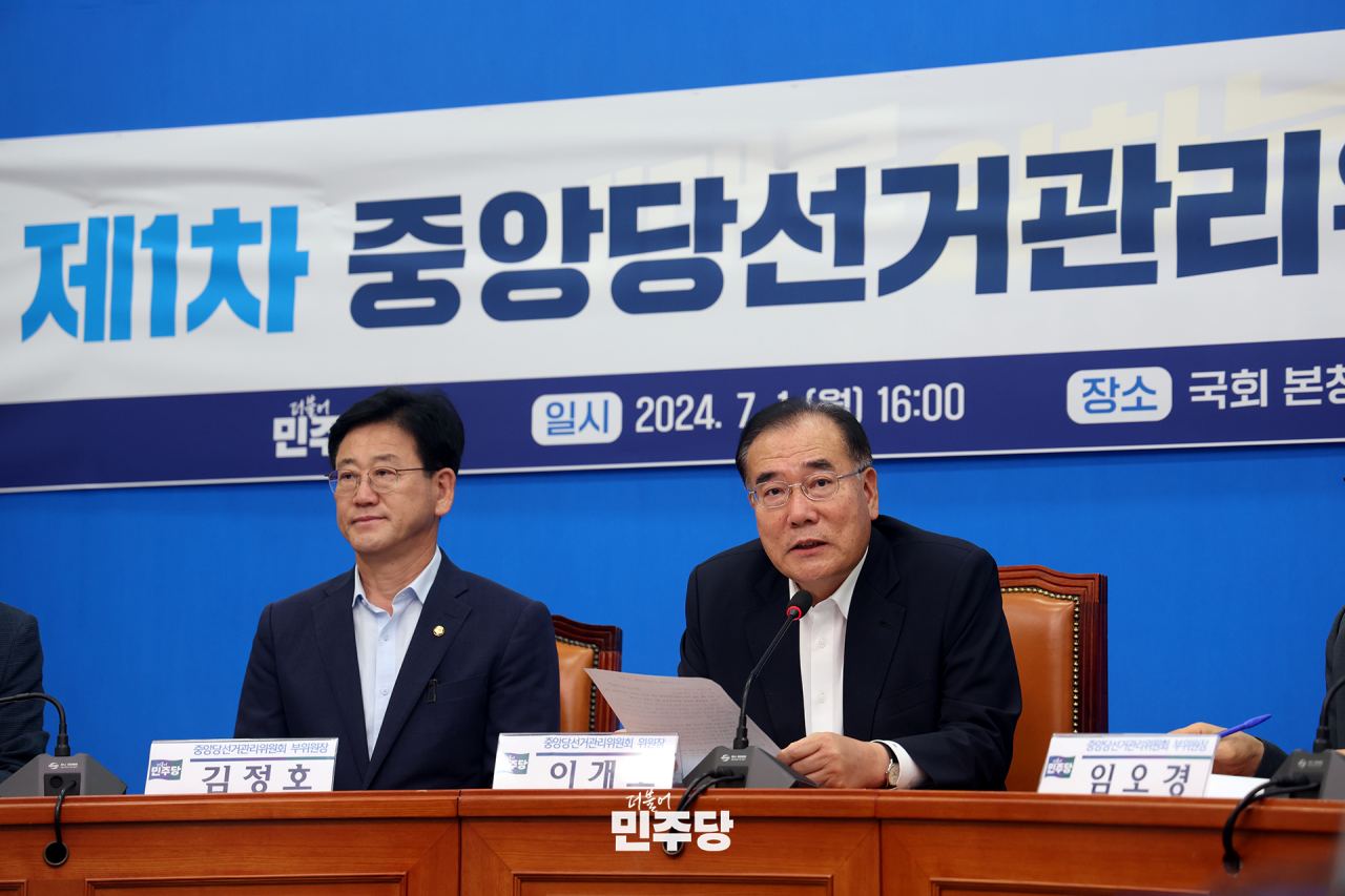 2024.07.01.(월) 국회 본청 당대표회의실에서 제1차 중앙선거관리위원회의를 진행하고 있다.