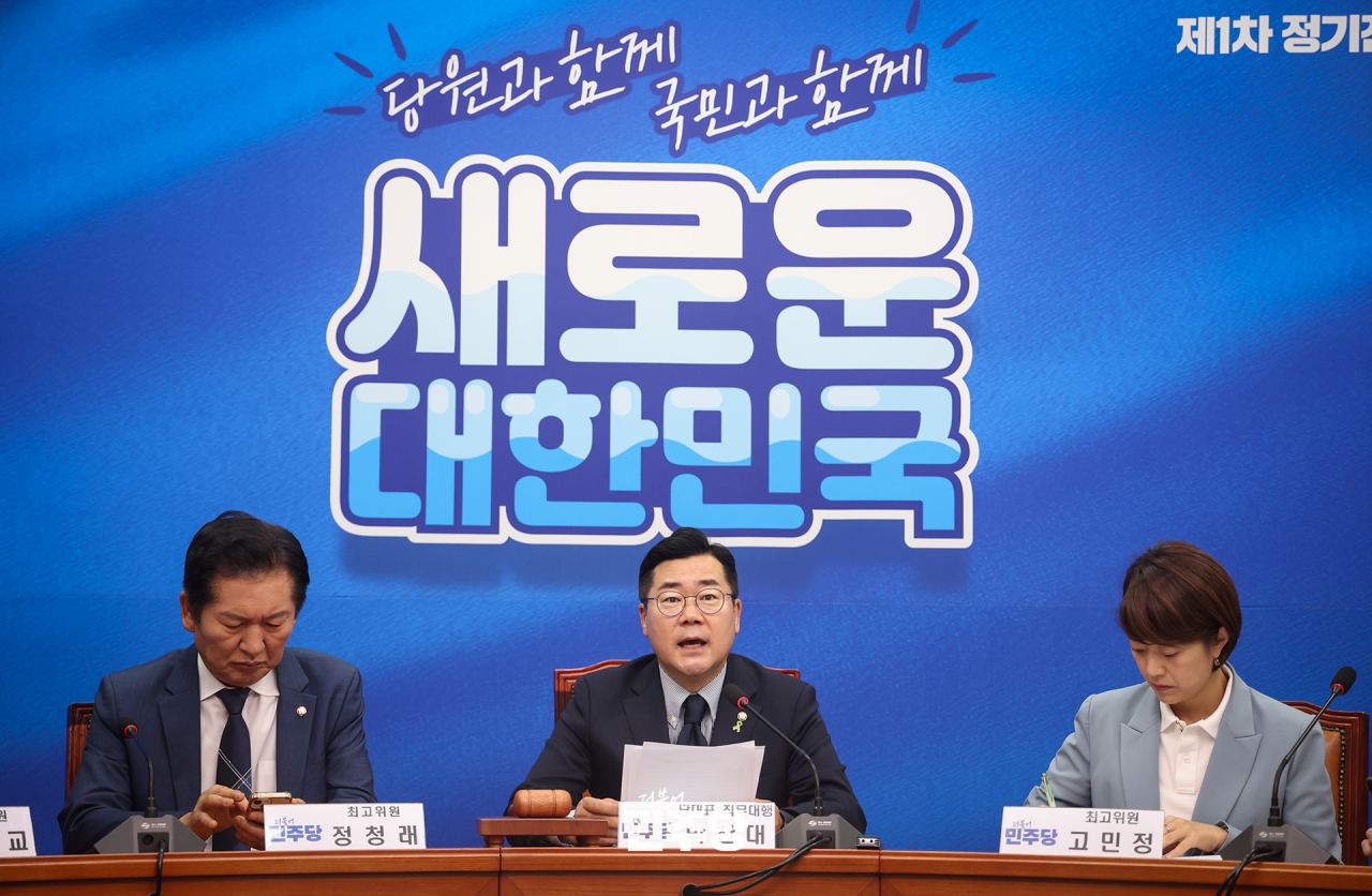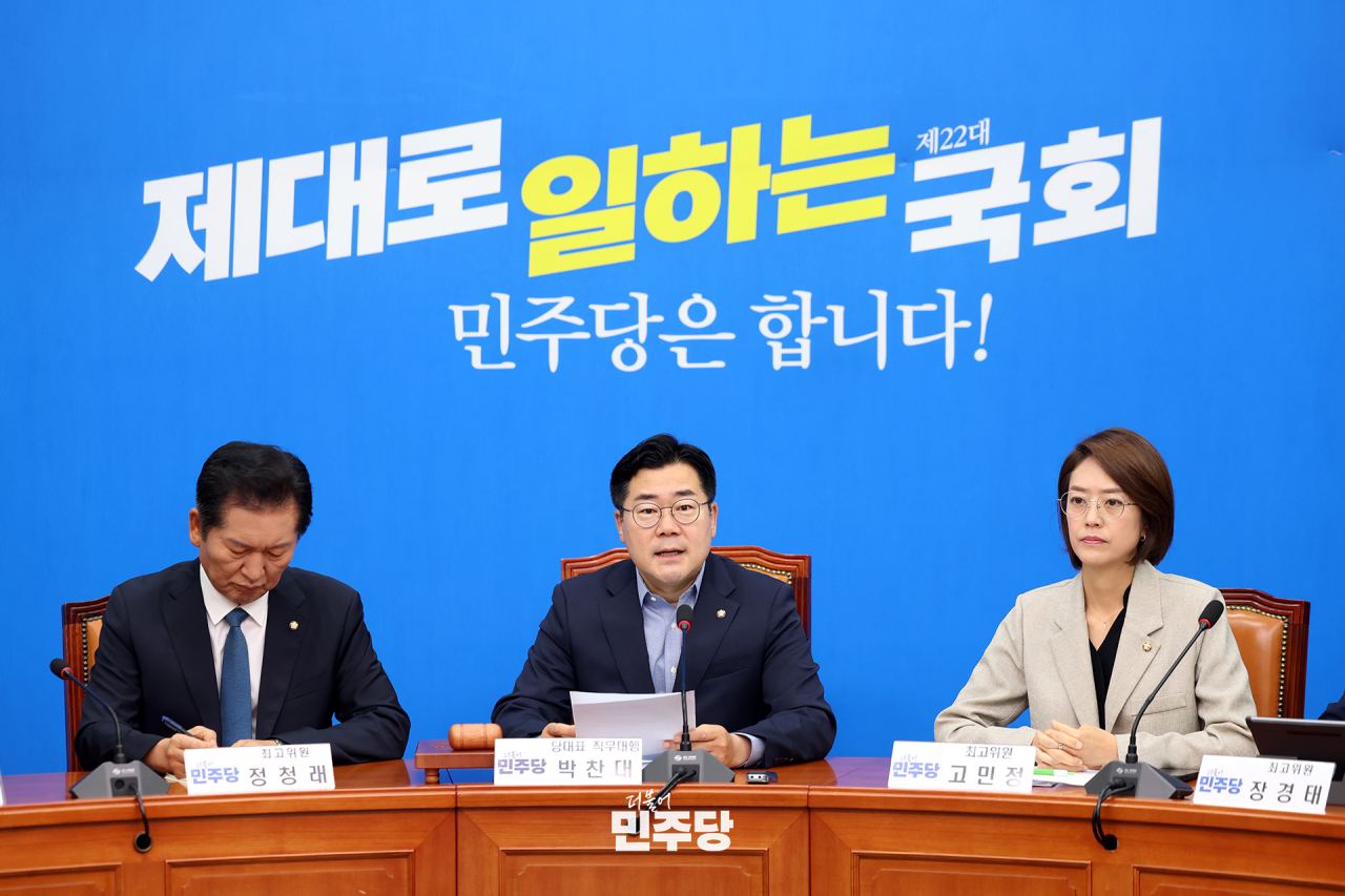 박찬대 당대표 직무대행 겸 원내대표가 2024.07.03.(수) 국회 본청 당대표회의실에서 열린 최고위원회의를 주재하고 있다.