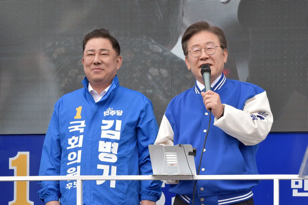 이재명 상임선대위원장이 2024.03.30.(토) 서대문구 신촌역에서 서대문구갑 김동아 후보 지지유세를 하고 있다.