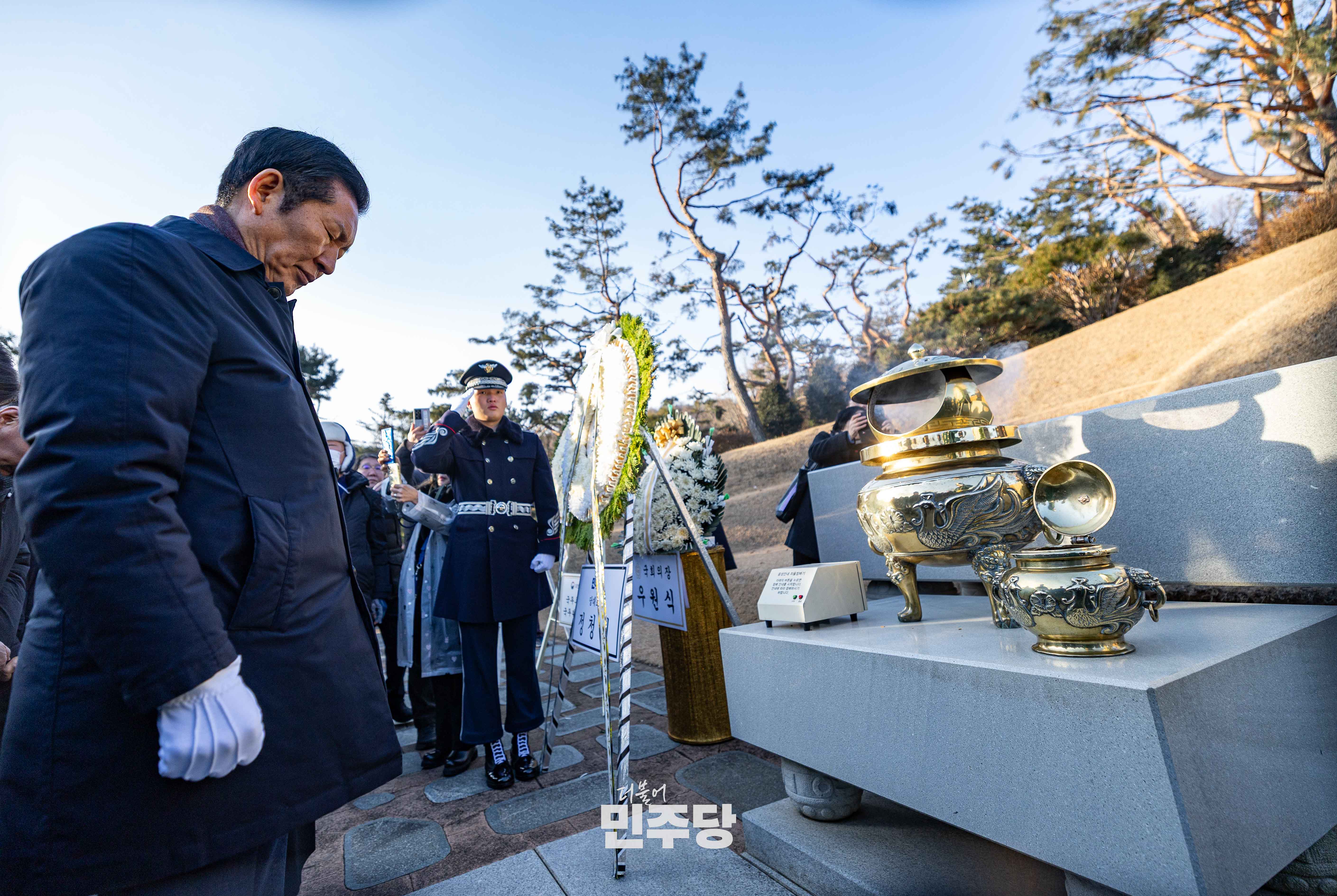 정청래 당대표 및 지도부가 2026.01.01.(목) 서울 동작구 국립서울현충원에 위치한 김대중 前 대통령 묘역에서 참배를 하고 있다.
