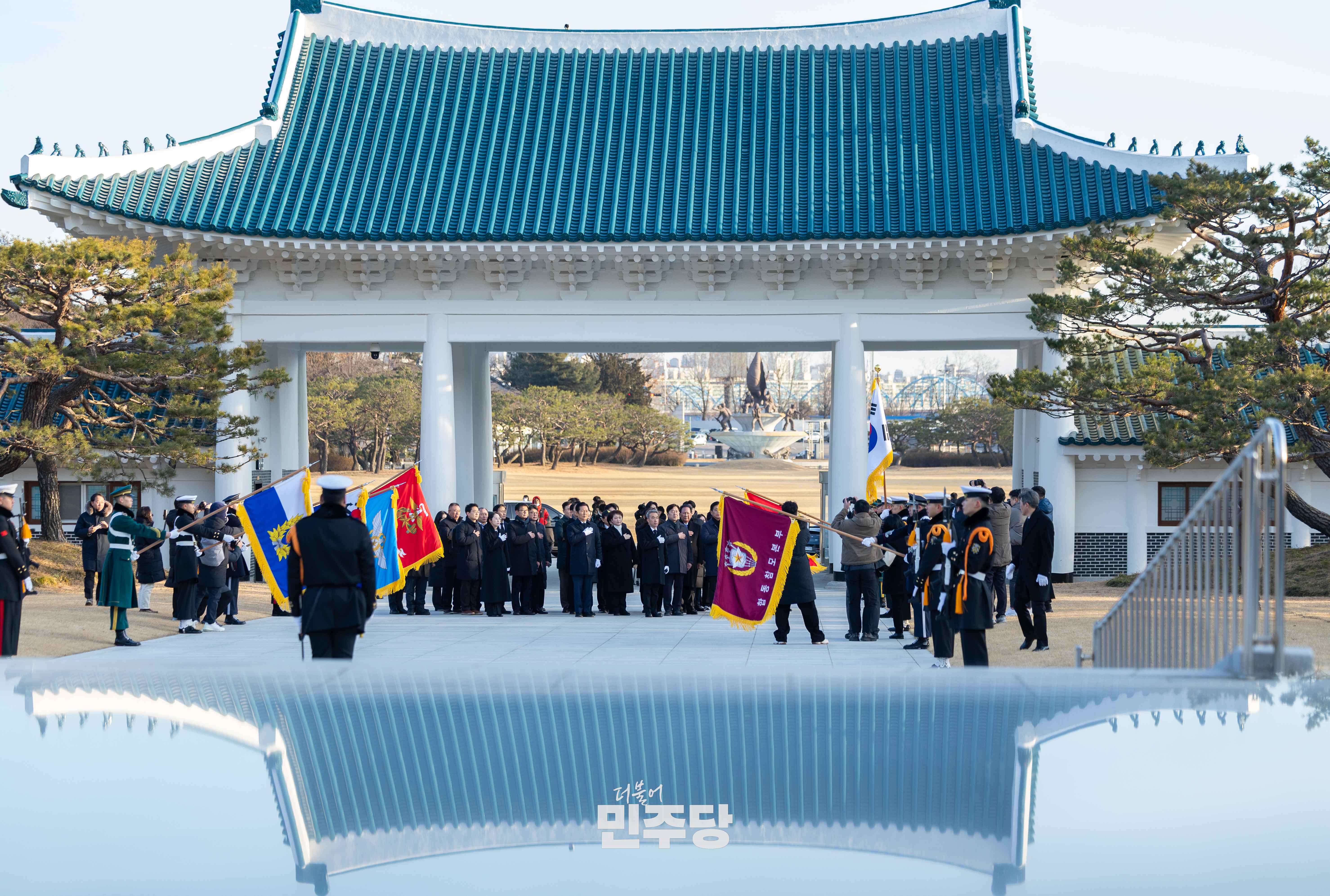 정청래 당대표 및 지도부, 2025 신입 사무처 당직자가 2026.01.01.(목) 서울 동작구 국립서울현충원에서 참배를 하고 있다..