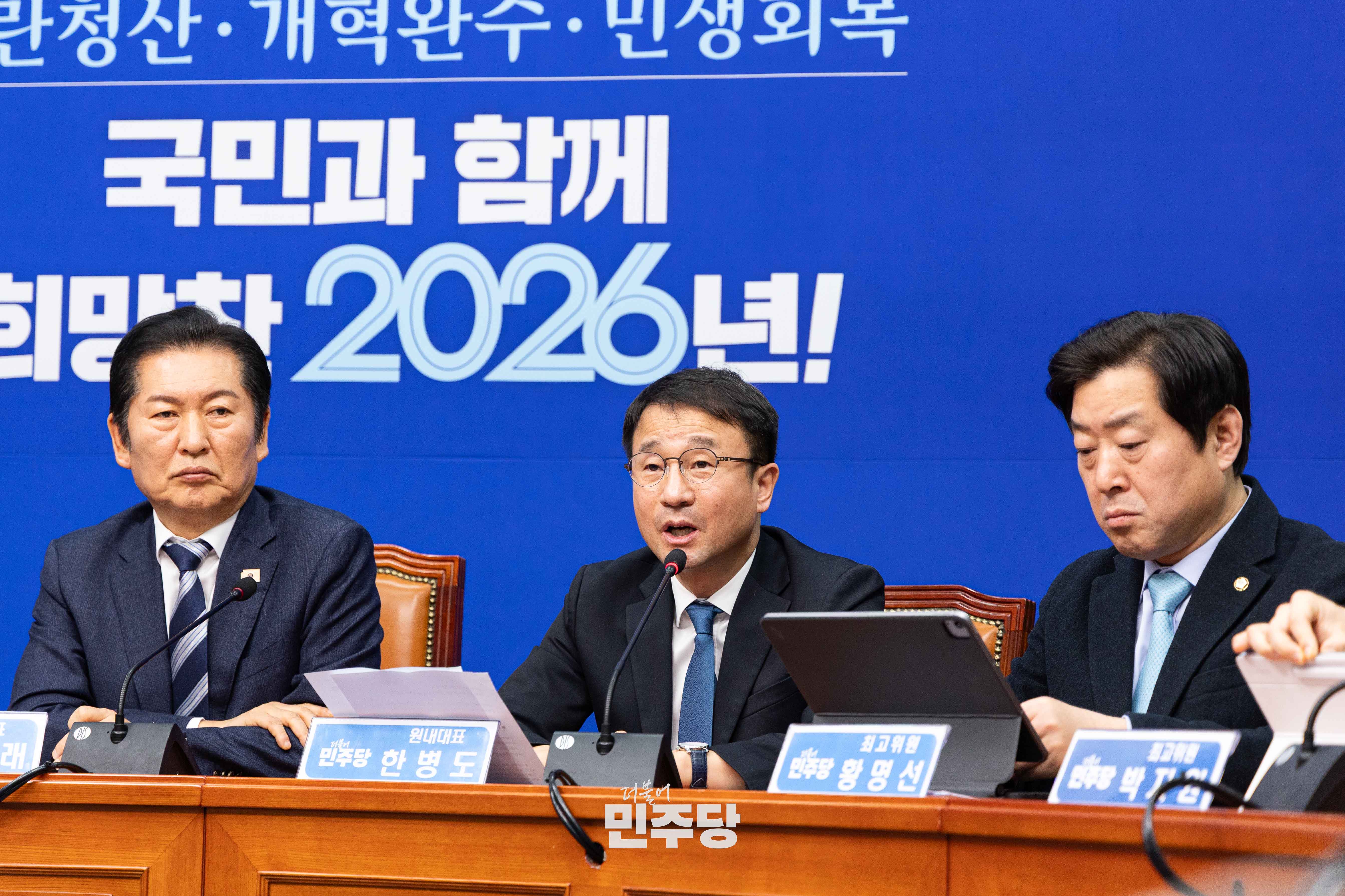 정청래 당대표가 2026.01.16.(금) 국회 본청 당대표회의실에서 열린 최고위원회의를 주재하고 있다.