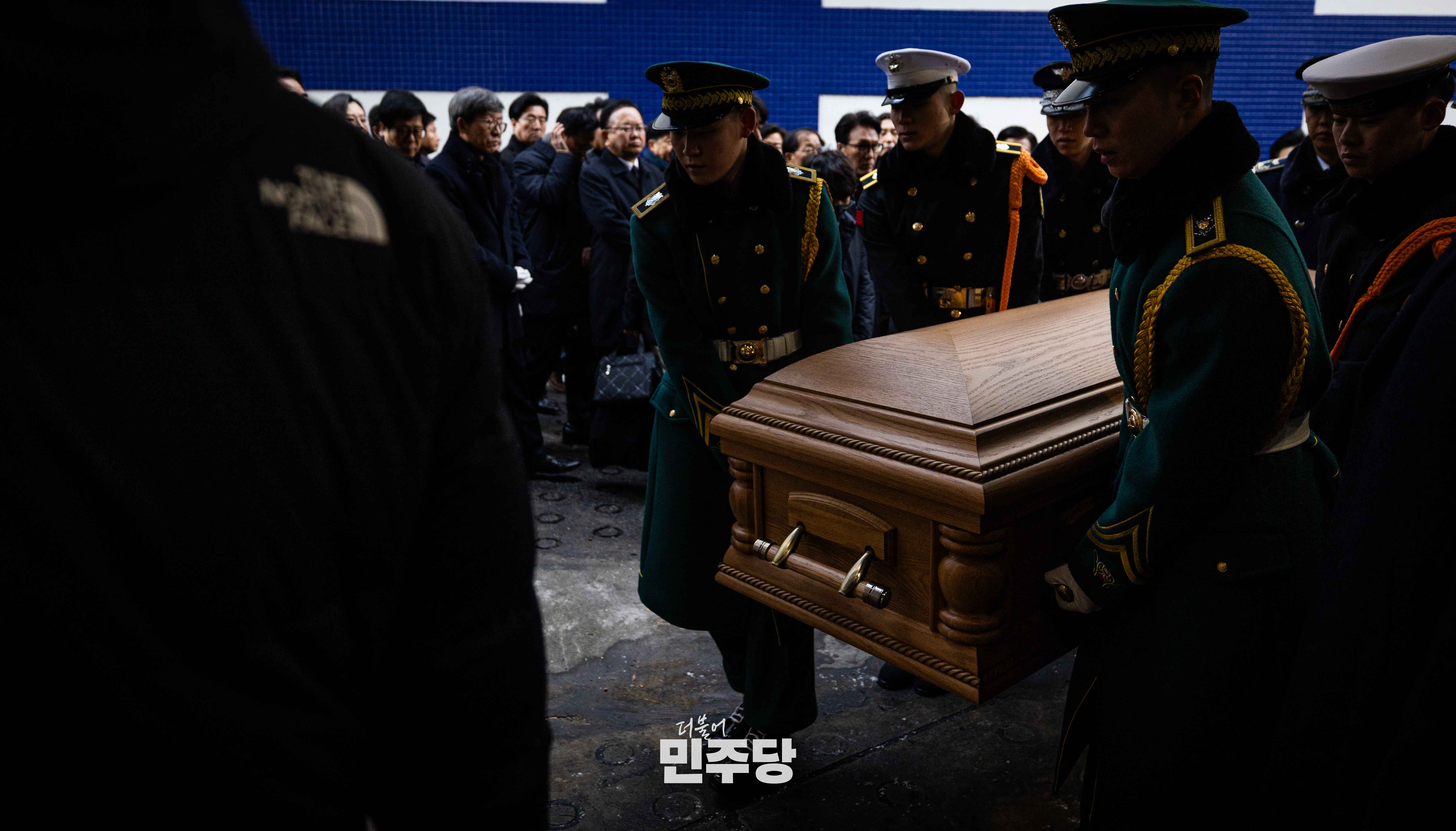정청래 당대표가 2026.01.27.(화) 인천국제공항 제2터미널에 귀국한 故이해찬 상임고문을 영접하고 있다.