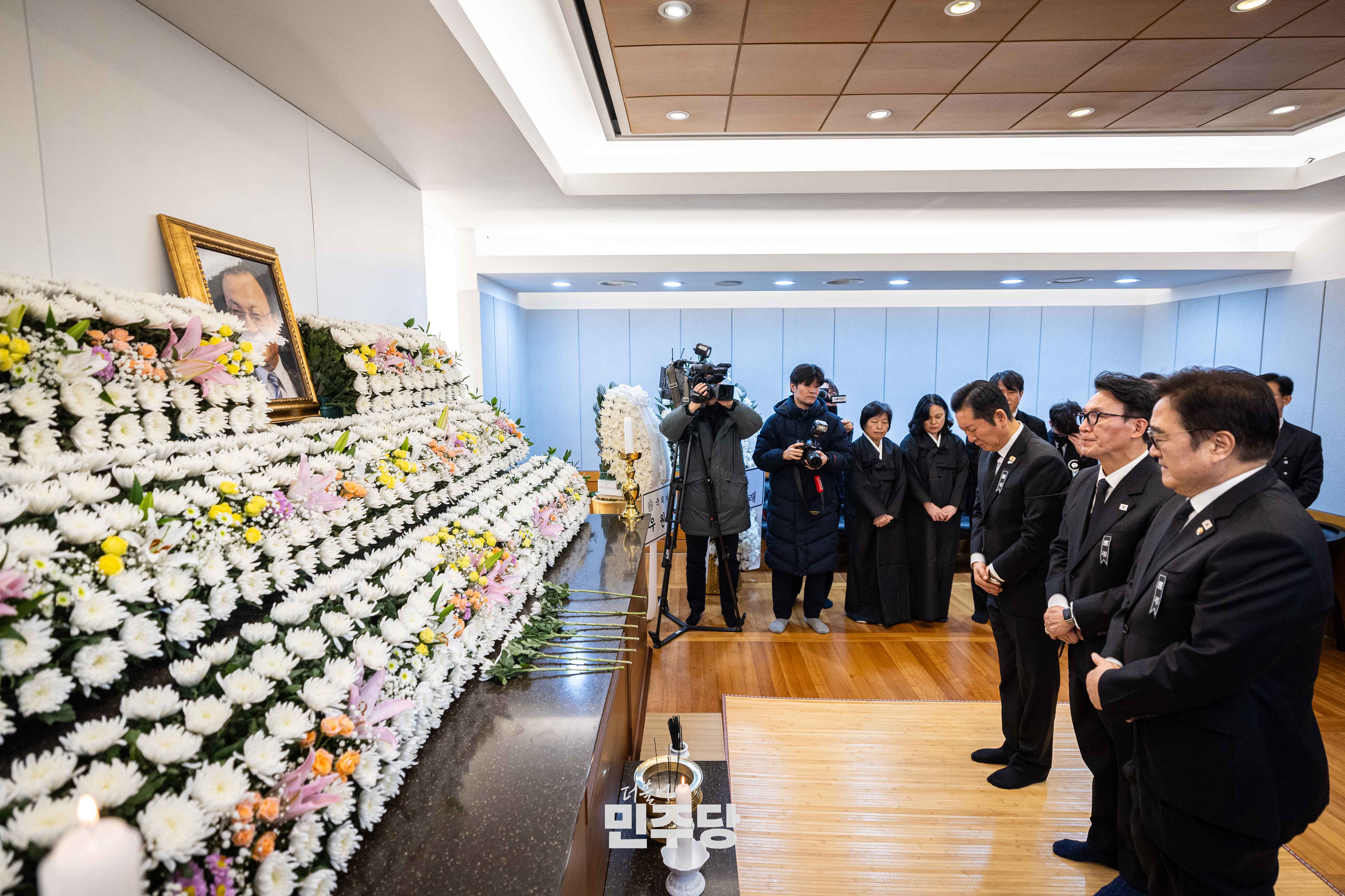 정청래 당대표가 2026.01.27.(화) 서울대병원장례식장에 故이해찬 상임고문 조문을 하고 있다.