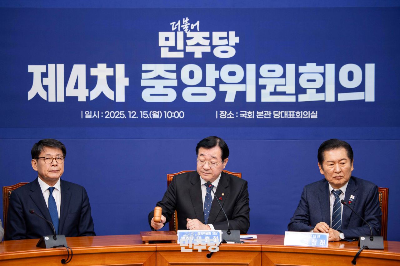 정청래 당대표가 2025.12.15.(월) 국회 본청 당대표회의실에서 열린 제4차 중앙위원회의에 참석하여 발언을 하고 있다.