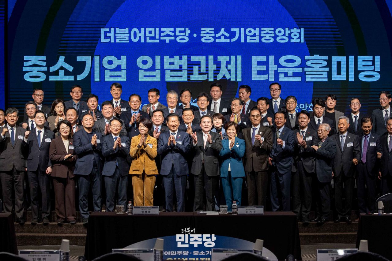 정청래 당대표가 2025.12.15.(월) 영등포구 여의도에 위치한 중소기업중앙회에서 열린 중소기업중앙회 중소기업 입법과제 타운홀미팅에 참석하여 참석자들과 기념촬영을 하고 있다.