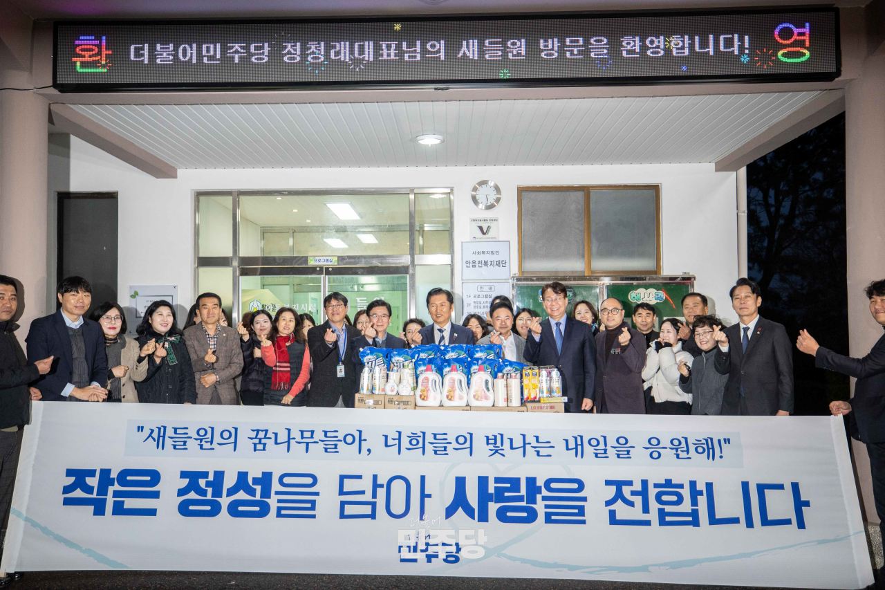 정청래 당대표가 2025.12.24.(수) 부산 동래구에 위치한 새들원에 성탄을 맞이해 방문하여 생활용품을 전달하고 있다.