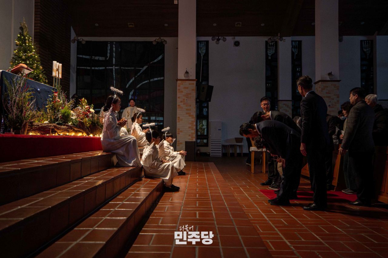정청래 당대표가 2025.12.24.(수) 부산 중구에 위치한 중앙성당에서 성탄 대축일 미사를 보고 있다.
