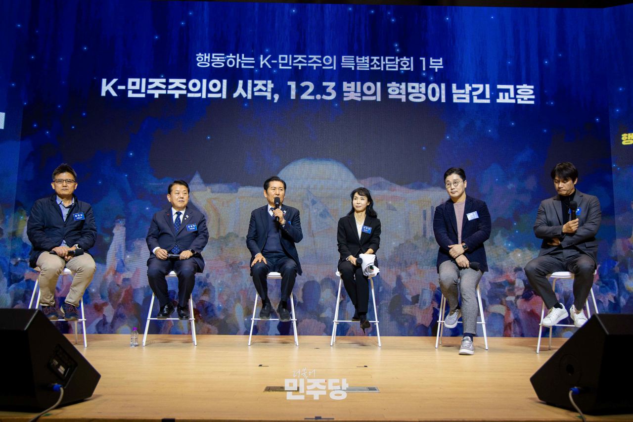정청래 당대표가 2025.12.03.(수) 국회 의원회관 대회의실에서 열린 12.3 비상계엄 1년 특별좌담회 행동하는 K-민주주의에 참석하여 좌담회를 하고 있다.