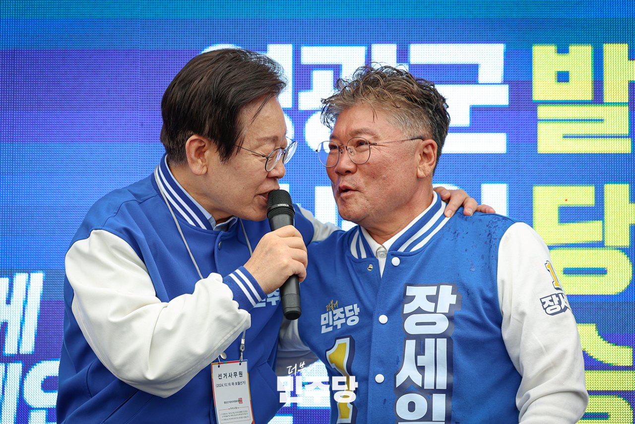 이재명 당대표가 2024.10.03.(목) 전남 영광군에 방문하여 장세일 영광군수 후보 지원유세를 하고 있다.