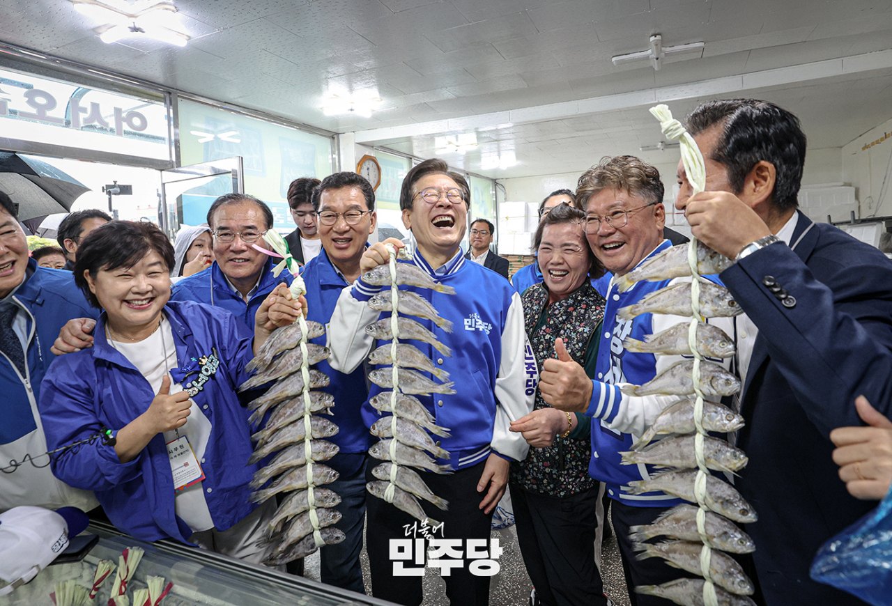 이재명 당대표가 2024.10.03.(목) 전남 영광군에 위치한 법성포에 방문하여 굴비거리상가를 돌며 상인들과 인사를 나누고 있다.