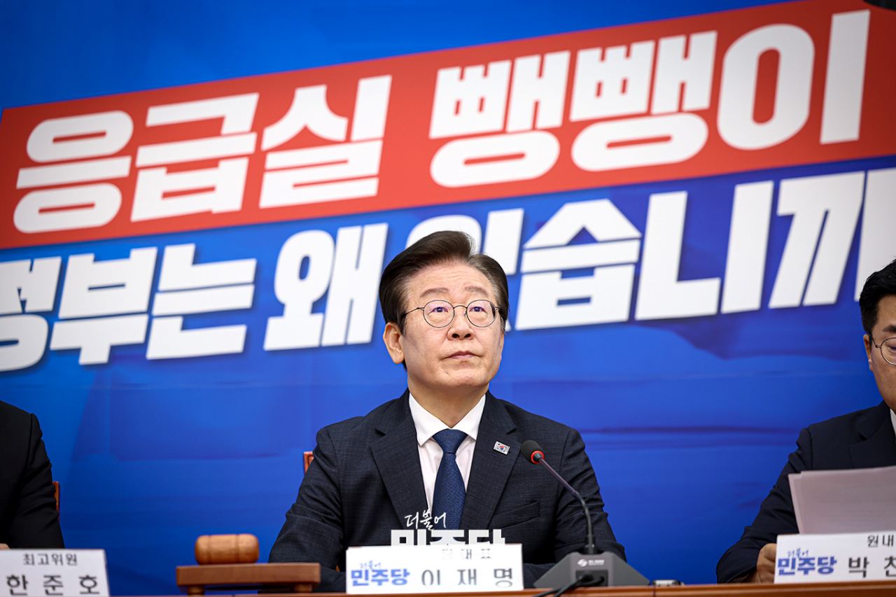 이재명 당대표가 2024.09.02.(월) 국회 본청 당대표회의실에서 열린 의료대란대책특위-대한응급학회 응급의료 비상사태 간담회에 참석하여 모두발언을 하고 있다.