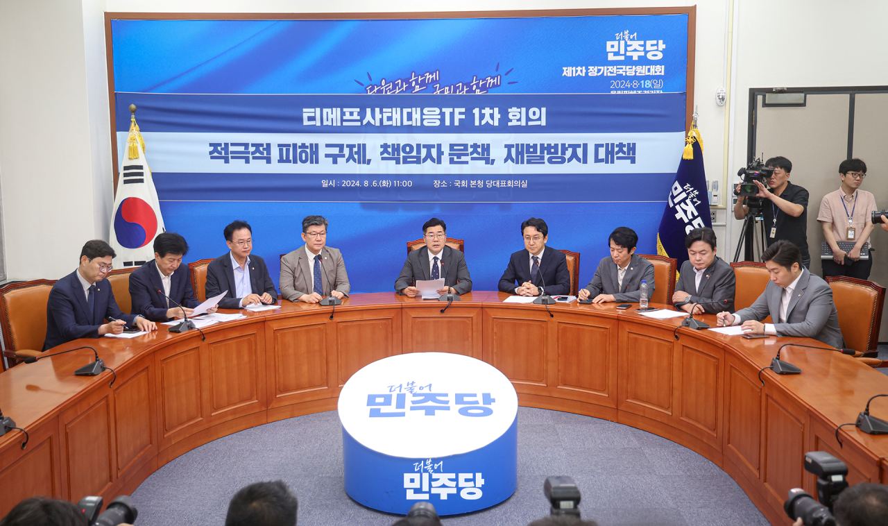 박찬대 당대표 직무대행 겸 원내대표가 2024.08.06.(화) 국회 본청 당대표회의실에서 열린 티메프 사태 TF 간사단 1차 회의에 참석하여 모두발언을 하고 있다.