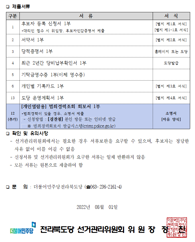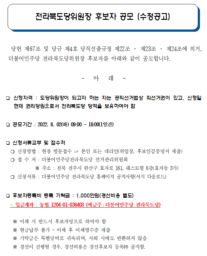 전라북도당위원장 후보자 공모 공고(수정 22.08.01)