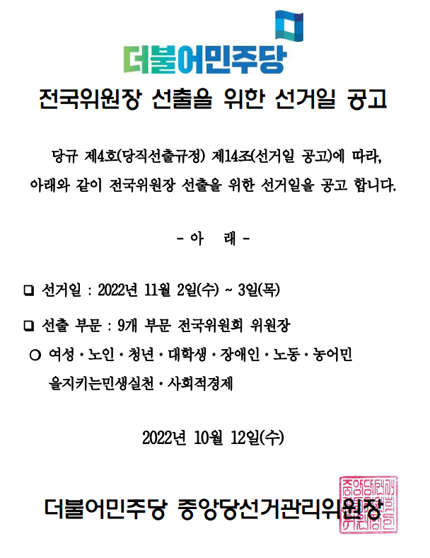 전국위원장 선출을 위한 선거일 공고