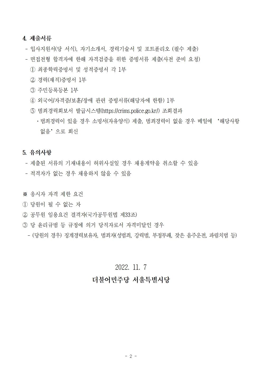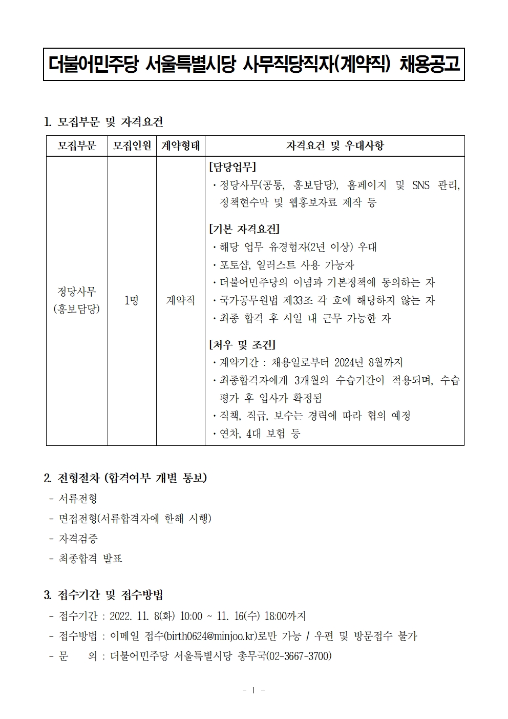 더불어민주당 서울시당 사무직 당직자 채용공고