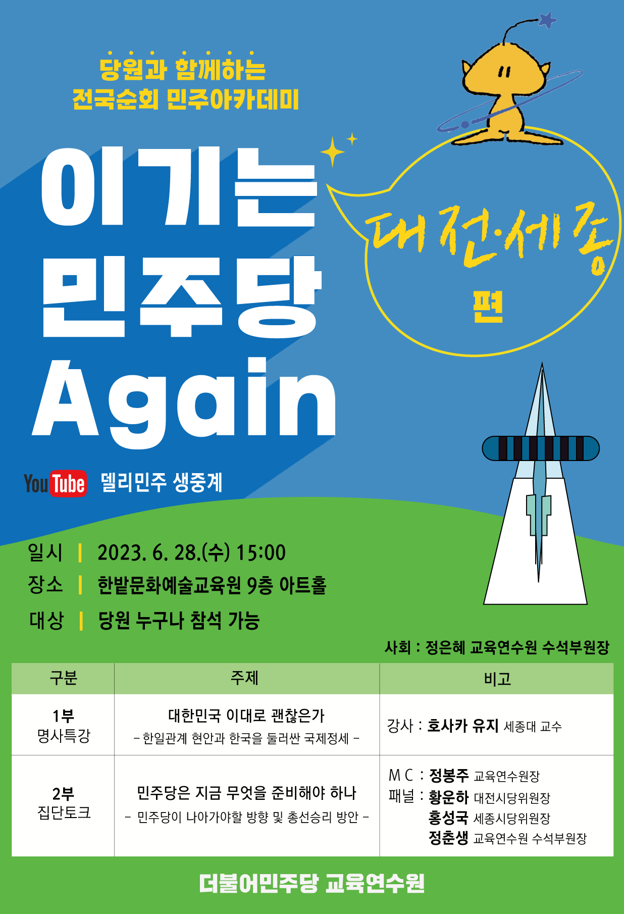 당원과 함께하는 전국순회 민주아카데미 : 이기는 민주당 Agian - 대전·세종 편-