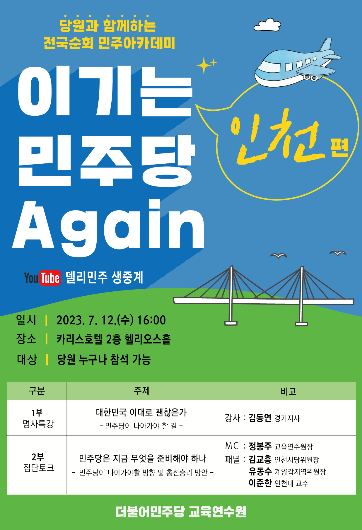 당원과 함께하는 전국순회 민주아카데미 : 이기는 민주당 Agian - 인천 편-