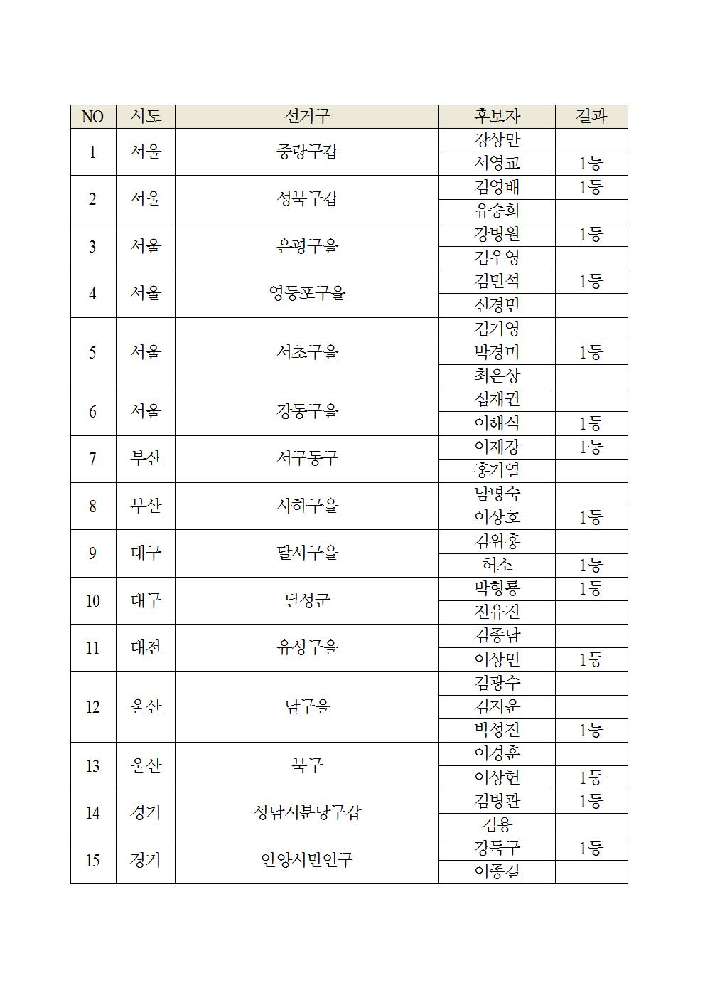 21대 국회의원선거 지역구 경선 제1(29) 결과 발표